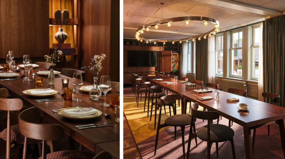 Iets waar The Hoxton Lloyd Amsterdam ook aan heeft gedacht zijn de hybride vergader- en evenementenruimtes van het hotel op de begane grond bestaande uit twee privékamers, de Dining Room en Drawing Room. Een knusse inrichting geïnspireerd met houten panelen en gezellige ouderwetse verlichting creëert een fijne sfeer voor allerlei soorten evenementen. Klein en intiem of grote gezellige diners.