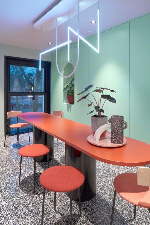 Vivian van Schagen, oprichtster van designbureau The Invisible Party: “Voorheen ging het om veel ruimte, status en prestige. Vandaag de dag gaat het eerder om beleving en de connectie met een stad en de gemeenschap. Bovendien wordt ruimte steeds kostbaarder en dus moet je als interieurontwerper veel creatiever omgaan met de beschikbare vierkante meters.” The Invisible Party werkte eerder al met Hema, Patagonia, W Hotel, en The Student Hotel.