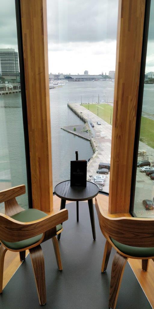 In Café Jakarta brengen de Franse executive chef Stéphane Besse en de Indonesische executive sous-chef Rendy Reanaldy onder de noemer 'Two Worlds Connected' uitnodigende aroma’s en exotische smaken samen in verrassende oriëntaalse gerechten met een Westerse twist. Het restaurant creëert een ontmoeting tussen culturen, stijlen en keukens waar kruiden blenden, specerijen mixen en smaken versmelten. De grote eilandbar nodigt uit voor een drankje, de oesterbar is een walhalla voor liefhebbers van fruits de mer en het grote terras gelegen op het zuiden geeft een prachtig uitzicht over het IJ.