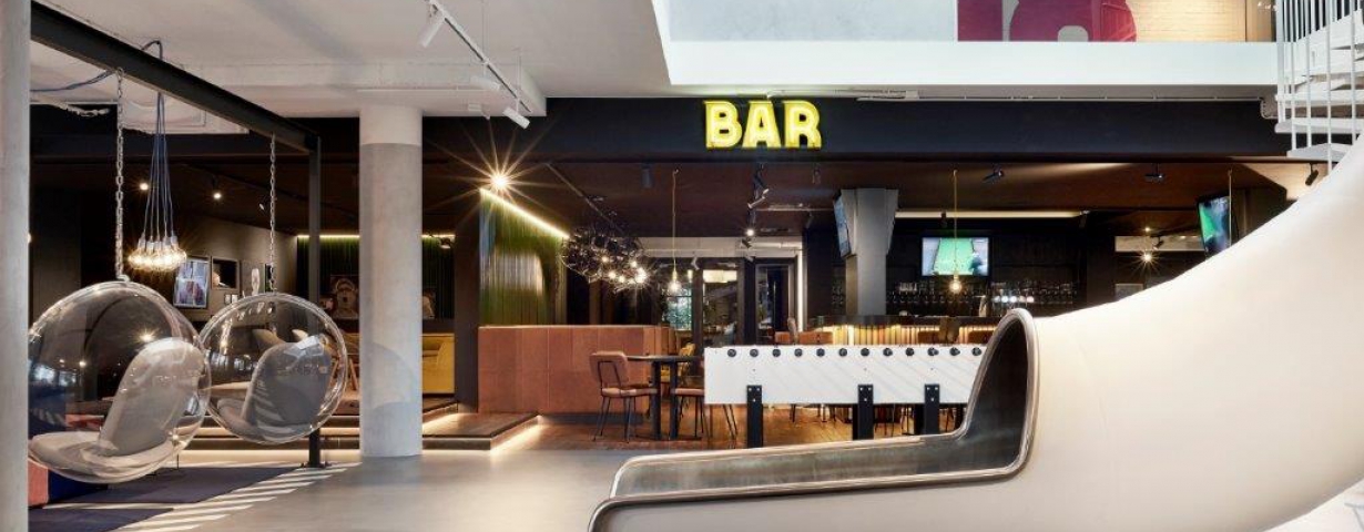 In het hele pand zijn bovendien sportieve elementen en details te vinden, maar altijd met een knipoog. En bovendien: in plaats van de vele, bestaande, overdekte tennisbanen is er het grootste multifunctionele sportcentrum van Europa en een speelhal voor de kleineren onder ons. Van Heeswijk: “Wat je hier vooral kunt doen, is plezier maken. Met je gezin, je partner, je collega’s, je sportteam. Alles onder een dak.” HUP is dus een typisch destination hotel. “Zodoende kunnen we nu de markt voor meerdaagse leisure, sport en meeting optimaal bedienen met een verassend uniek product.”