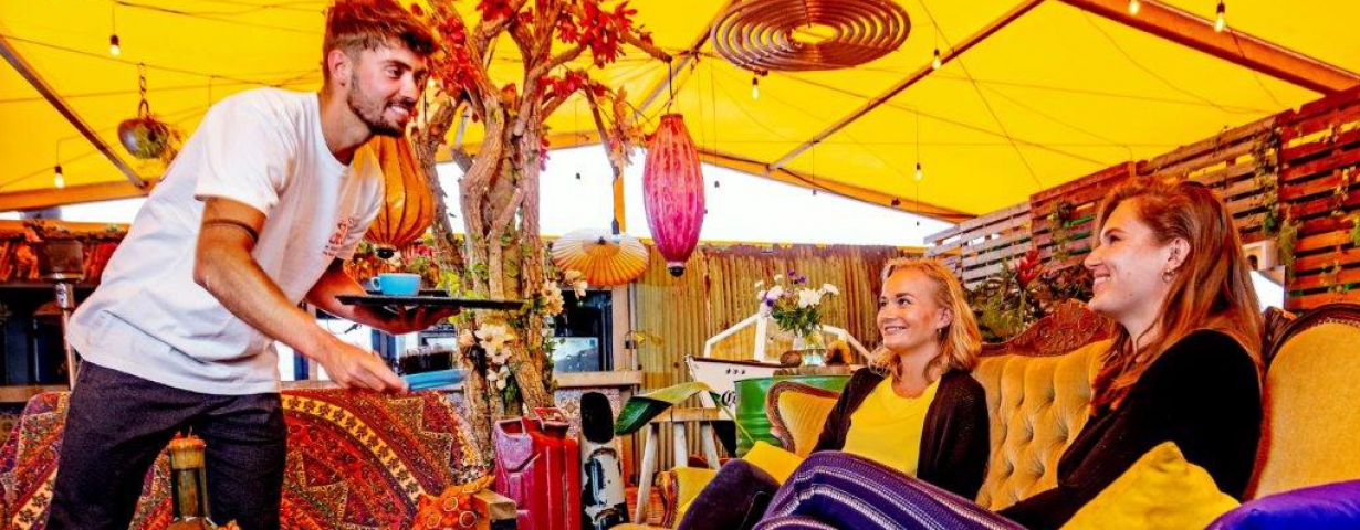 We spreken de enthousiaste Varkevisser in Beachclub Indigo aan het Scheveningse strand. Hij opende de hippie-achtige strandzaak acht jaar geleden en runt de zaak nu samen met Tom Commers. Gasten komen er ogen tekort: het interieur is extreem kleurrijk en vrolijk en je waant je even in een wereld waarin stress niet bestaat. Varkevisser: “We willen dat gasten hier een relaxed gevoel krijgen, alsof ze op vakantie zijn. Lekker laagdrempelig en toegankelijk, maar wél met goede service en eten en drinken van hoge kwaliteit.”