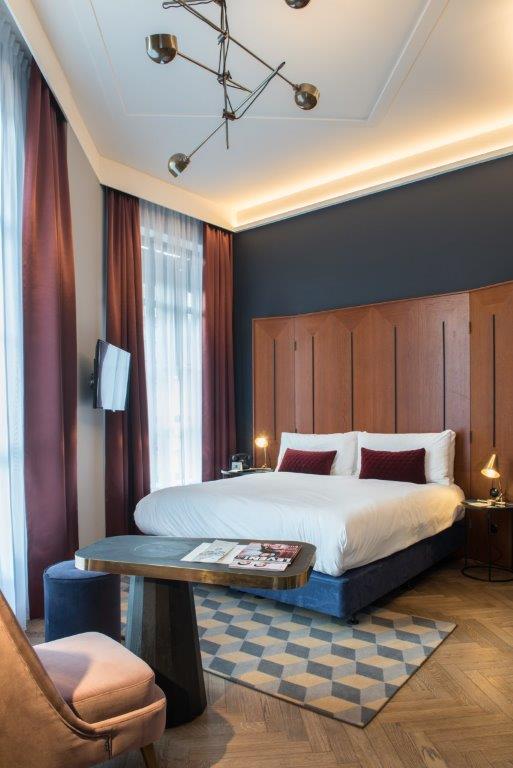 HUGO Interiervormgeving is verantwoordelijk voor het design van het nieuwe hotel. Interieurontwerper Hugo Broeders: “Wij lieten ons inspireren door de meest unieke en belangrijke gebouwen en plekken in de buurt, zoals het Koninklijk Paleis, het Binnenhof en het Internationale Hof van Justitie. Twee van de 3 kamertypes zijn hier dan ook op gebaseerd: de Royal Residence en de Court Capital.”