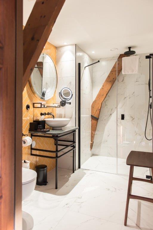 De Royal Residence-kamers hebben uitzicht op het paleis en hebben glas in lood ramen, hoge plafonds en originele lambrisering. Het kleurenpalet wordt gevormd door donkerood en blauwgrijs in combinatie met satijn en warme velvets. De Court Capital-kamers geven het gevoel van rijkdom met gebruik van leer en een kleurenpalet van groentinten. Op de bovenste verdieping van het pand bevinden zich de meer eigentijdse kamers. Hier worden de oude originele balken en schuine plafonds gecombineerd met betonnen vloeren en glazen wanden.