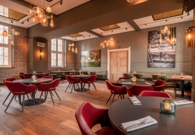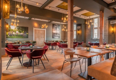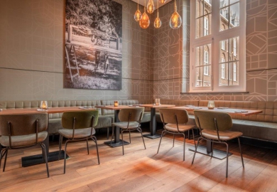 Bart Hagevoort, interieurarchitect bij Heineken, heeft in nauwe samenwerking met horecaondernemer Gerwin Sleutjes het restaurant ontworpen. Hagevoort: "Omdat de bovengelegen kapel gebruikt wordt als evenementenruimte moest er een geheel nieuwe staalconstructie onder het plafond. Dit is in overleg met de monumentencommissie fraai weggewerkt in het nieuwe plafond met behoud van het gevoel van de oude structuren."