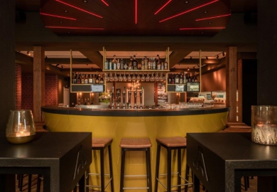 Hij vervolgt: "Een in goud gespoten cocktailbar siert de ronde ruimte achterin. Ook zijn hier bottle-lockers voorzien waar vaste gasten gebruik van kunnen maken. Binnen het restaurant zijn ook meerdere leerplekken. Leven, proeven, leren, vieren en werken kan allemaal bij Ingenhousz."