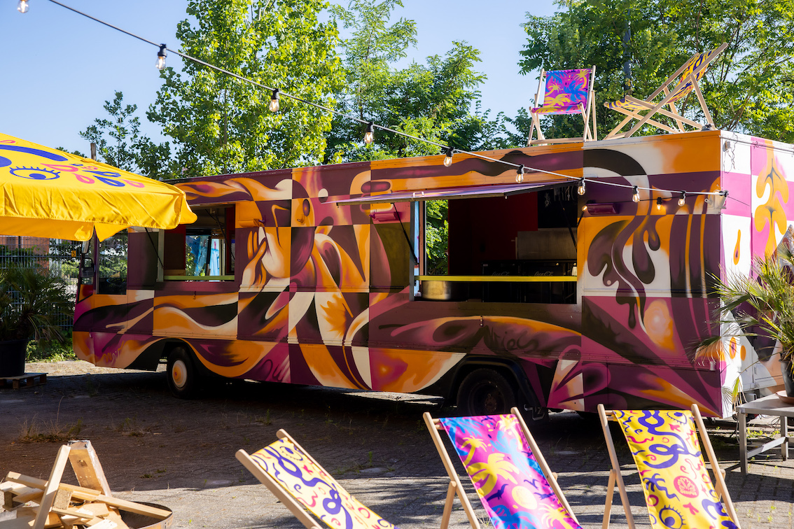 Het planted-based kebabmerk Karma Kebab, bekend van de foodtrucs op veel festivals, opent de deuren in het voormalig fietsdepot aan de Kanaalweg in Utrecht. Initiatiefnemers Pascal Labrie, Marcel van der Heijden, Hidde Stolwijk en Ivo van der Pauw willen gasten het vrije festivalgevoel laten ervaren en dit combineren met een toegankelijke bar en restaurant. Bekijk onder dit bericht foto's van Karma Kebab.