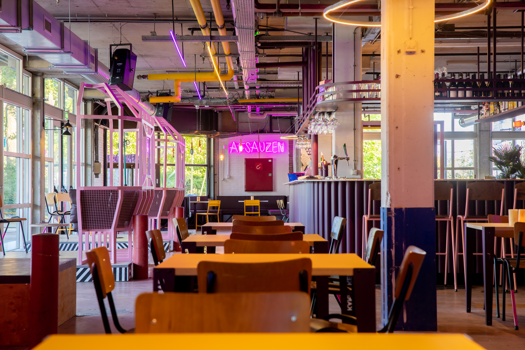 De enorme oppervlakte aan eventspace biedt ruimte voor veel wisselende initiatieven. En dat is ook precies wat er gaat gebeuren in dit multifunctionele horecaconcept aan de Kanaalweg. Met aan de ene kant vintage kledingmarkten, culturele voorstellingen en bedrijfsevenementen en aan de andere kant rijdende botsauto’s of een rollerskate disco: allemaal onder één dak. Er zijn ook plannen voor op het dak: een dakterras is in ontwikkeling, waarbij de verwachting is deze volgend jaar te kunnen openen.