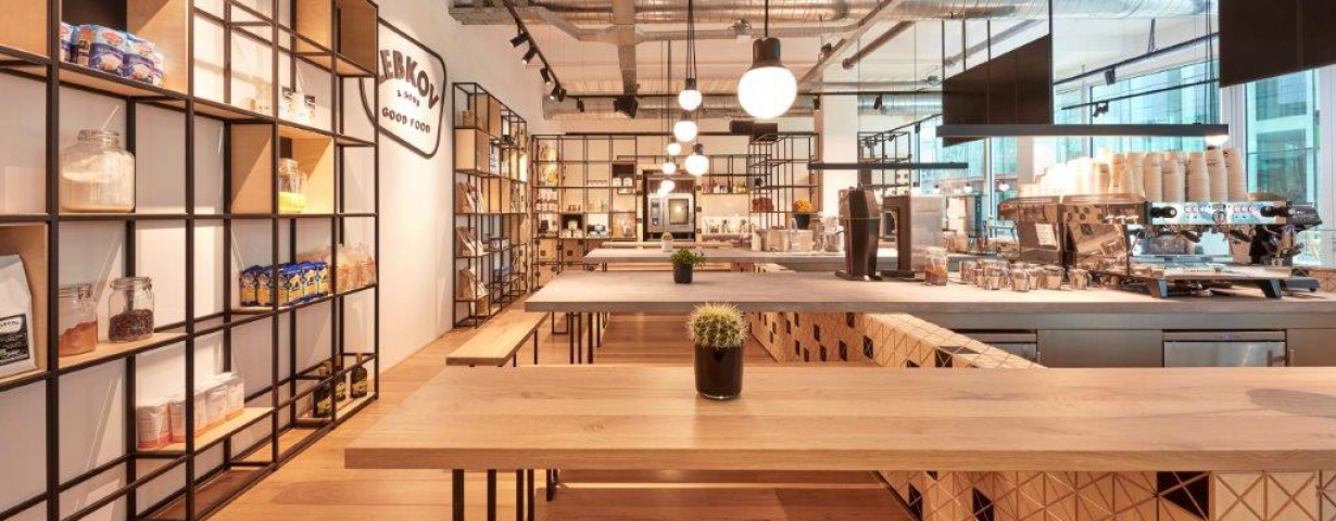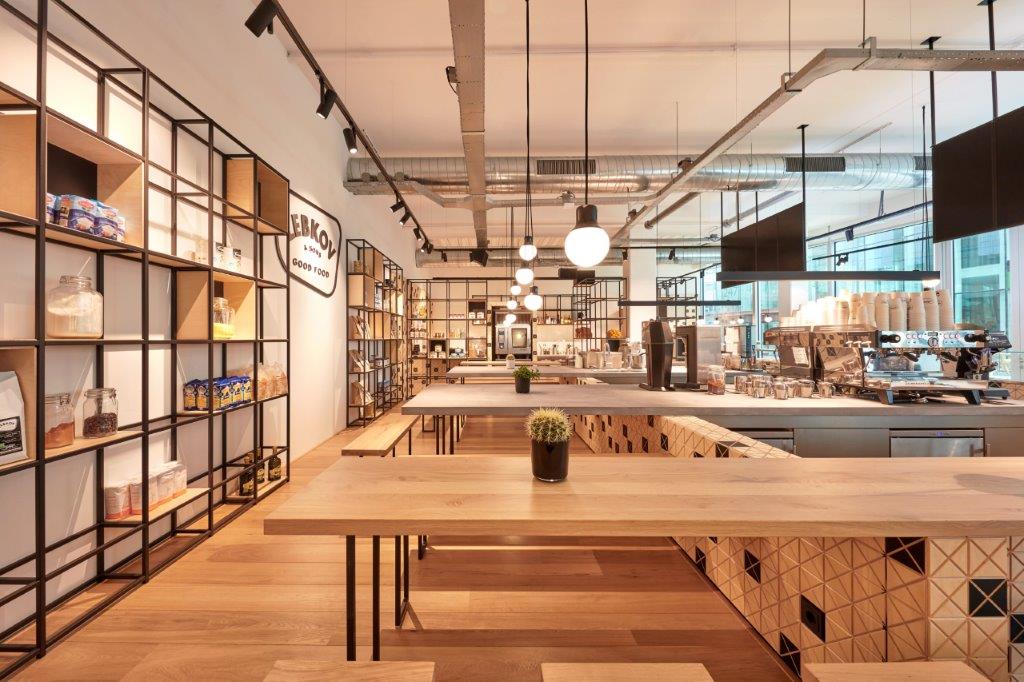 Het is in Nederland de vijfde locatie van Lebkov & Sons en is te vinden op de begane grond van gebouw The Rock. Net als de andere locaies van Lebkov & Sons, is de nieuwe locatie opgevat als een leefruimte in de keuken, waar klanten en barista’s dezelfde tafel of hetzelfde werkblad delen. Hout, beton en staal, gecombineerd met een discreet verlichtingsontwerp stralen warmte, authenticiteit en eenheid uit.