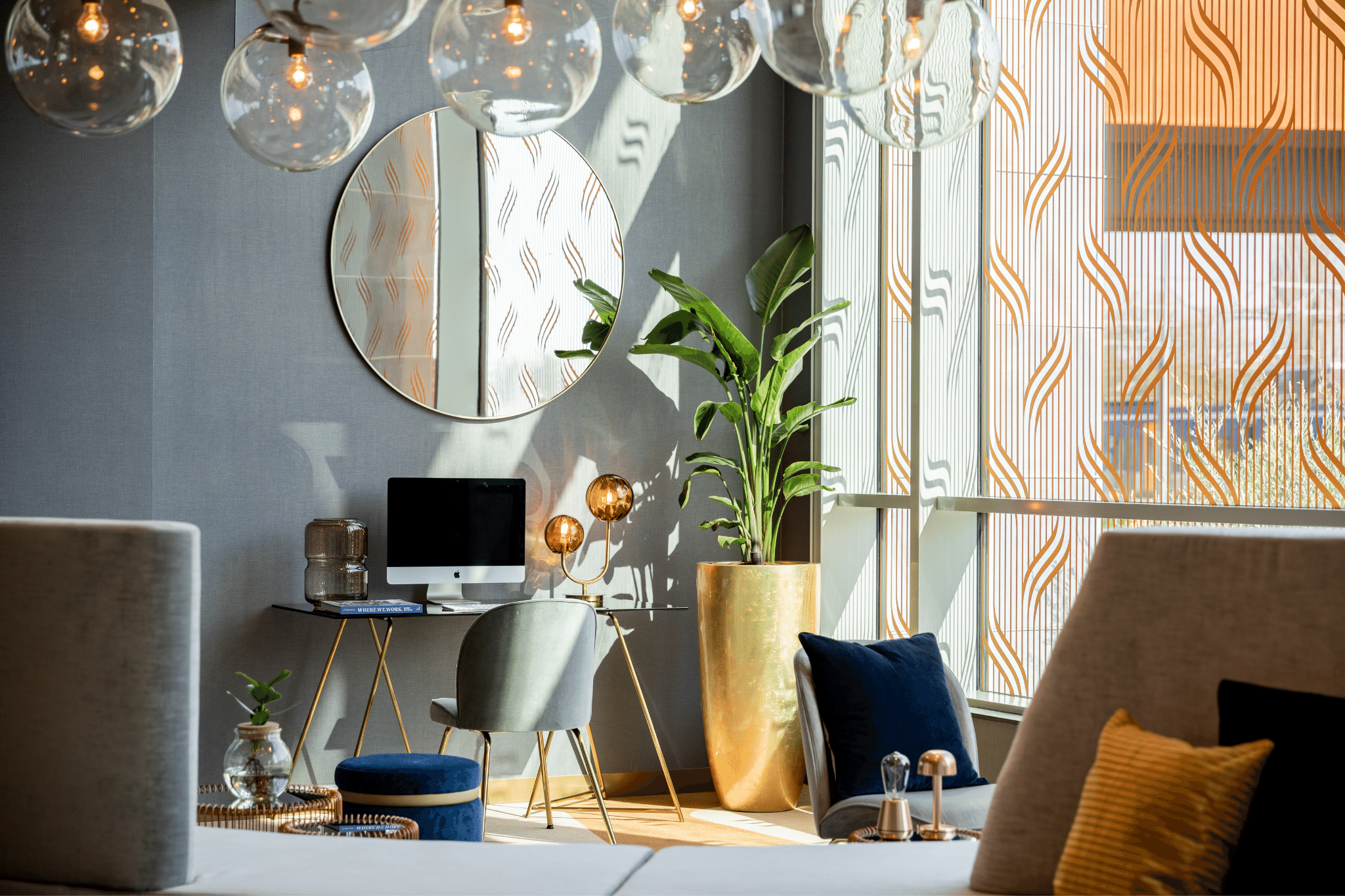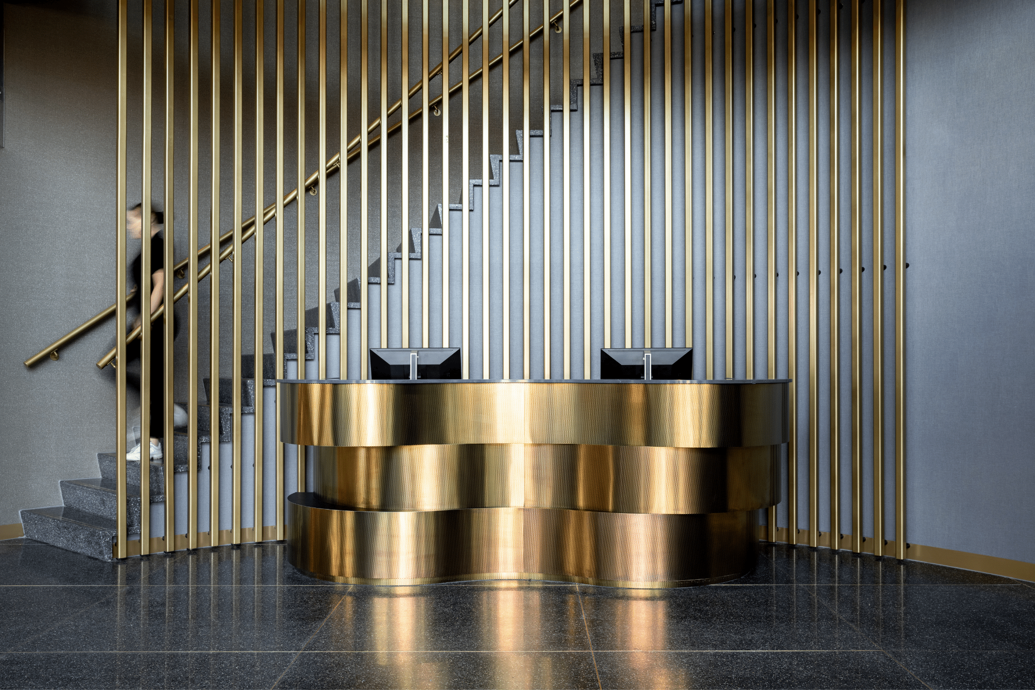 Hotel The Den onderscheidt zich door een modern, stijlvol design dat de historische watergrachten van de stad weerspiegelt. Melle van Uden, General Manager van Hotel The Den: “Naast de waterkaart van de stadsrivieren (de Binnendieze) in ons logo, zie je door het hele hotel organische vormen en vloeiende lijnen. Ook de kleur koper staat bij ons centraal, een verwijzing naar de Paleisbrug waar we direct mee verbonden zijn. Hiermee maken we letterlijk en figuurlijk de verbinding met de stad.”