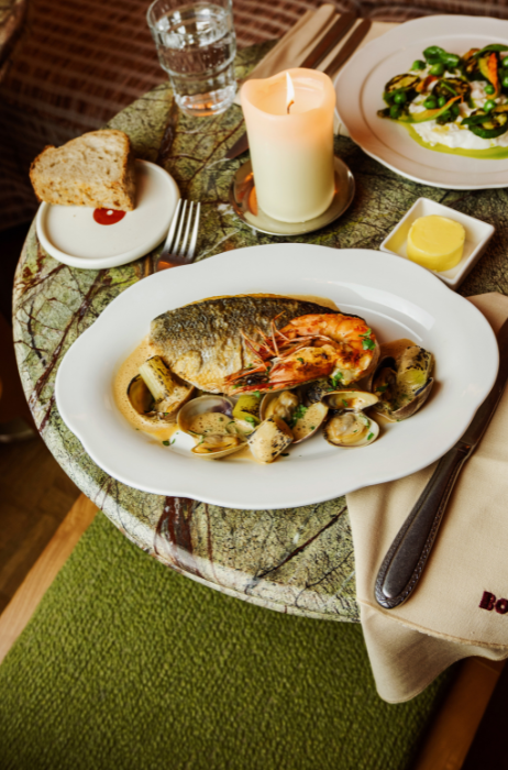 Op het menu staan herkenbare klassiekers met een moderne twist, zoals patatas bravas met pulpo en chorizo, vongole in bisque, krokante aubergine met romesco en een mooi stuk zeebaars. De gerechten worden begeleid door een zorgvuldig samengestelde wijnkaart, met passende keuzes per gerecht.