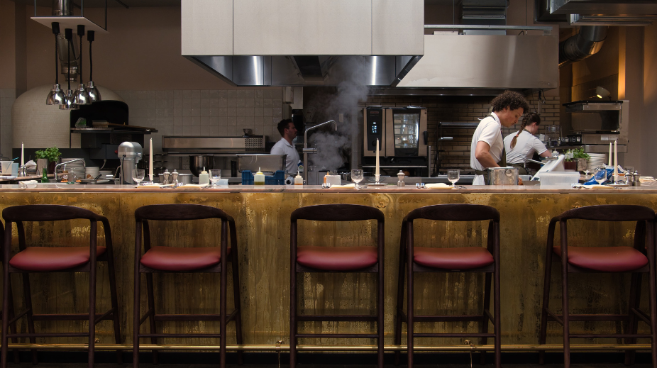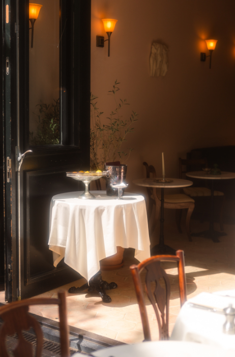 De zaak biedt plaats aan zo’n 135 gasten, met een opvallende chef’s table rond de keuken die plaats biedt aan twintig gasten. “Dat is zonder twijfel de mooiste keuken die ik ooit heb gezien”, zegt Tieleman trots. “Als ik zelf ga eten, zit ik daar het liefst.” Ze bedacht het ontwerp van de keuken zelf, net als de rest van het interieur. “Geen architect, geen interieurdesigner. Samen met mijn broer Sam hebben we het helemaal zelf getekend en ingericht. We hebben marktplaatsen afgezocht in Italië en Frankrijk voor meubels en accessoires met een ziel.