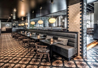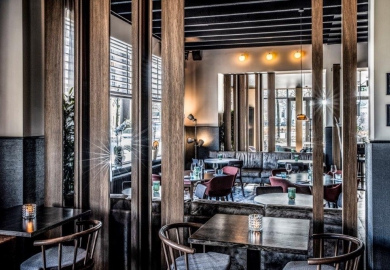 De horecazaak kan binnen 140 gasten kwijt en buiten 40 en is opgedeeld in verschillende ruimtes. Zo kunnen gasten voorin koffie drinken en borrelen, halverwege lunchen en achter op de verhoogde vloer dineren. Daarnaast is er nog een private dining room. Le Mair: “De bar verbindt alle zones en functies. Deze zones worden bovendien extra benadrukt door onder andere een aantal semi-transparante room dividers.”