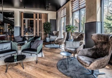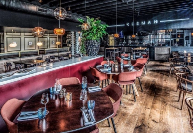 Le Mair van King Kongs: “Het is een plek met een verhaal. De oude functies van het gebouw zie je terug in diverse elementen. De stijl is mid century modern. Ook een eyecatcher: de bekleding van de bar, die speciaal werd ontworpen voor deze zaak. Enkele gebruikte voorwerpen zijn verder toegevoegd om meer sfeer en intimiteit toe te voegen.”
