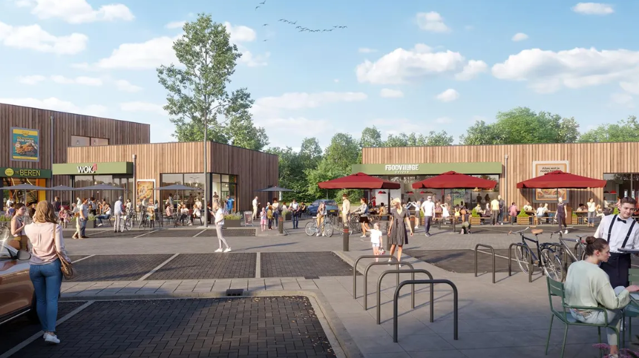 *De tekst gaat onder de renders van Food Village Duiven en het grijze kader verder.
