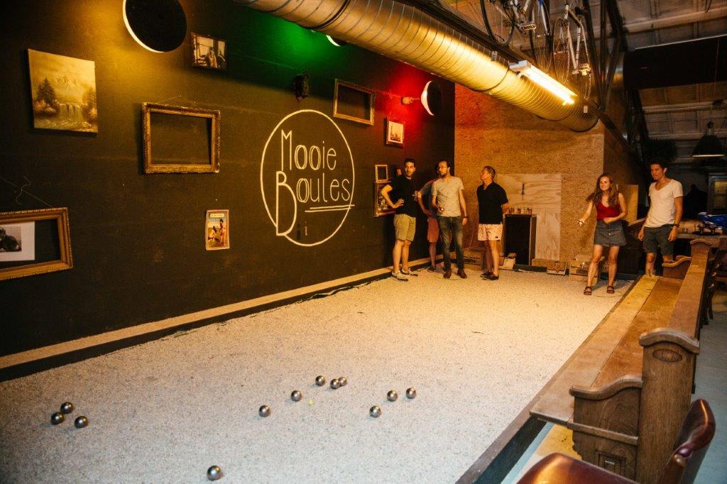 In Amsterdam-Oost opende onlangs Mooie Boules. Een plek waar gasten met vrienden, familie en collega's kunnen eten, drinken, dansen en jeu de boulen. De 500 m2 tellende hal heeft 8 banen, een grote bar met Frans dorpsplein en 6 foodconcepten van bekende topchefs als Ron Blaauw en Michiel van der Eerde van BAUT.