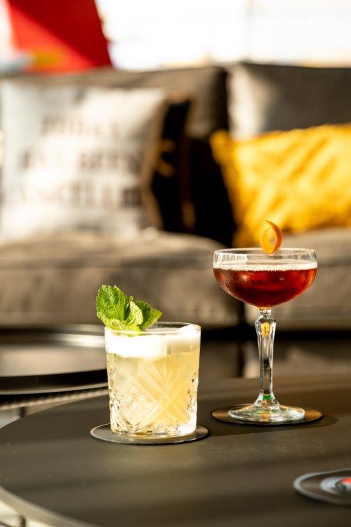De bar van Moxy Utrecht, en het grote, zonnige terras aan het water, met honderd zitplaatsen, vormen een nieuwe ontmoetingsplek voor gasten en Utrechters. In het interieur van het hotel spelen lokale elementen een rol. Stoelen uit de naastgelegen Pastoe-fabriek sieren de lobby, net als een tafel, gemaakt van een oude boom die ooit in de stad stond.