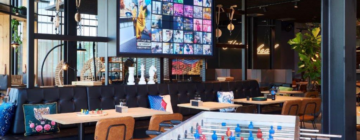 Het eerste Moxy-hotel is gevestigd in de Amsterdamse Houthavens en ook in Utrecht, Scheveningen en Den Haag zijn hotels in ontwikkeling.