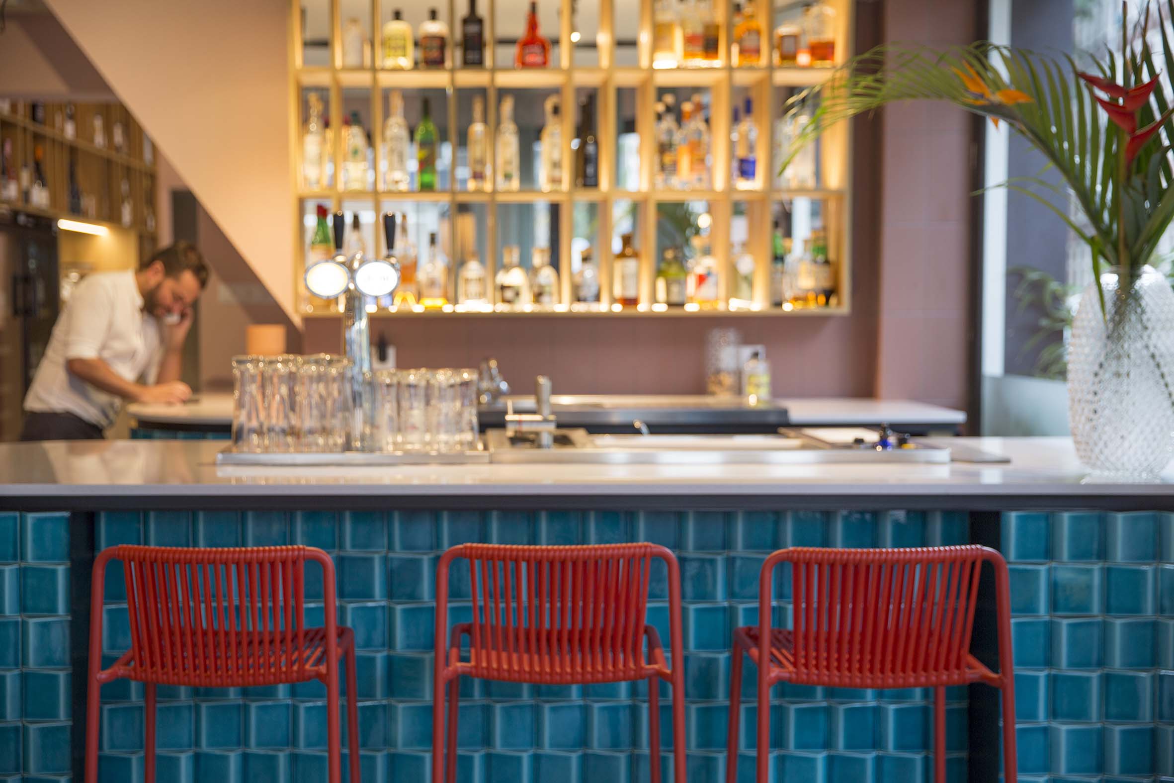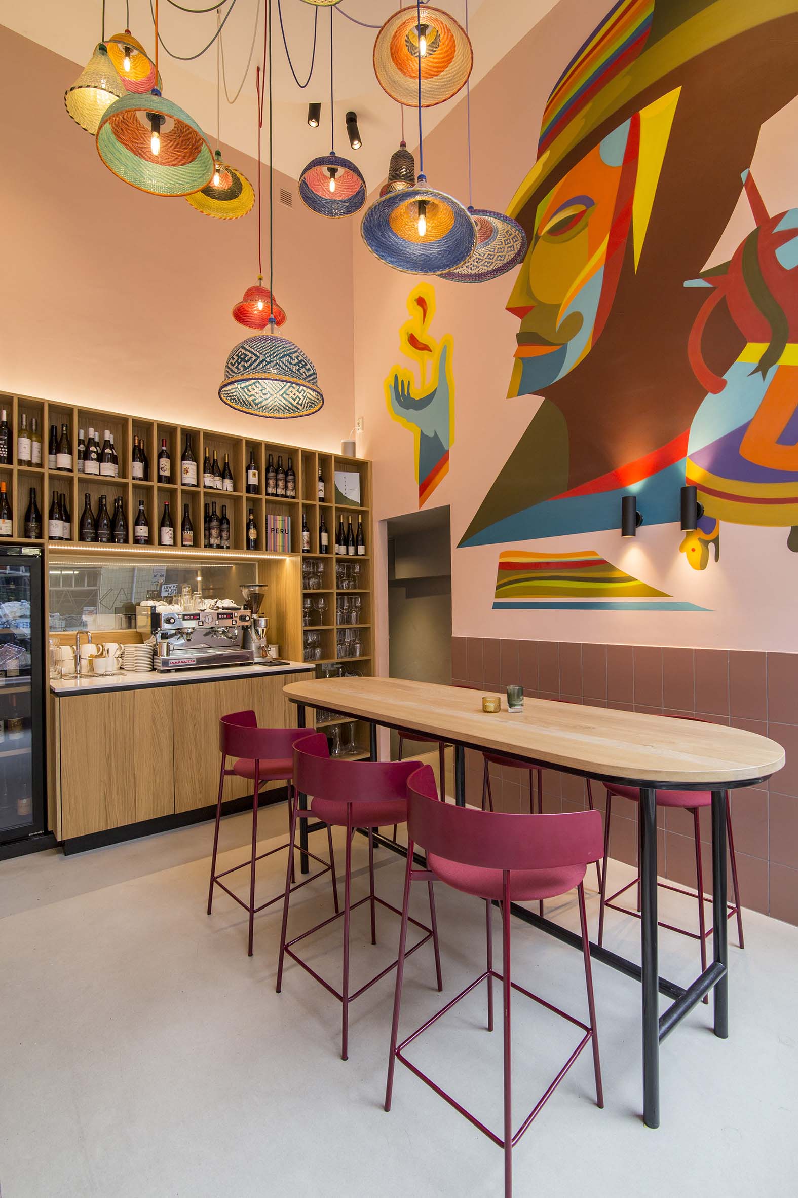 De uitdaging waar de ontwerpers voor stonden was om de 230 vierkante meter tellende ruimte, verdeeld over drie aangrenzende panden, op een functionele manier met elkaar te verbinden. Een complex onderdeel van deze operatie was de juiste positionering van de verschillende bars die voor een optimale infrastructuur zorgen.