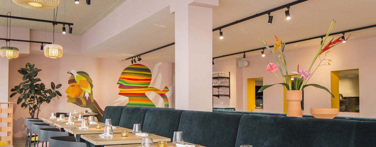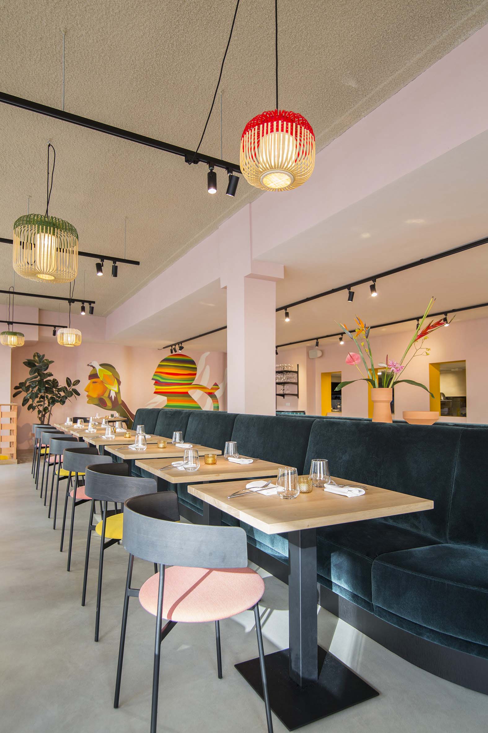 Michiel Wijnen (Studio Michiel Wijnen) en Roos Meeder (Meeder Ontwerpers) ontwierpen het complete interieur, inclusief een koffie- en cocktailbar, de meubels en de muurschilderingen. De woorden uitbundig, luchtigheid en verfijnd waren de ingrediënten waarmee zij een levendig familiegevoel creëerden. De nadruk ligt ook op de connectie tussen de keuken en het restaurant. Dit realiseerden de ontwerpers bijvoorbeeld door poortjes te creëren in de muren tussen de beide ruimtes. De poortjes, die aan de binnenzijde goudgeel zijn geverfd, roepen een associatie op met het licht dat op Azteekse tempels valt; de doorkijkjes zorgen tegelijkertijd voor het contact tussen de iets lager gelegen keuken en het restaurantgedeelte.