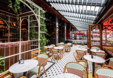 Will Erens van designbureau Too Many Agencies transformeerde de zaak. Het heeft een enorm terras en Parijse styling. Over het interieur zegt hij: “De eilandbar met de kroonluchter op zes meter hoogte vormt het altaar van de brasserie. Opvallend zijn verder het van glas gemaakte plafond in de voorpui, de fluwelen stoffen met Amsterdamse schoolmotieven en de glas-in-loodelementen. Amsterdamse nostalgie gaat in deze nieuwe zaak hand in hand met het bruisende en straks weer swingende Rembrandtplein.”