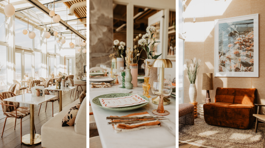 Manon de Groot is verantwoordelijk voor het interieur van strandpaviljoen Zoomers en de strandhuisjes. Rijke natuurlijke materialen en zachte kleuren, voornamelijk van HK Living, vormen de basis van het interieur. Het is luxueus en tijdloos met een eclectisch tintje, waarin het strand, de zee en de duinen terugkomen. Dit interieur sluit naadloos aan op het bijbehorende hotel Zoomers, zowel qua interieur als exterieur.
