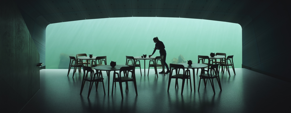 Restaurantgasten kunnen bij ''Under'' vanaf hun tafel door het panoramavenster de onderwaterwereld rond de scherenkust van het Skagerrak bekijken. Kalm of uitnodigend of wild en bedreigend; afhankelijk van het weer en de seizoenen laat de zee zich van verschillende kanten zien vlakbij het meest zuidelijke puntje van Noorwegen.