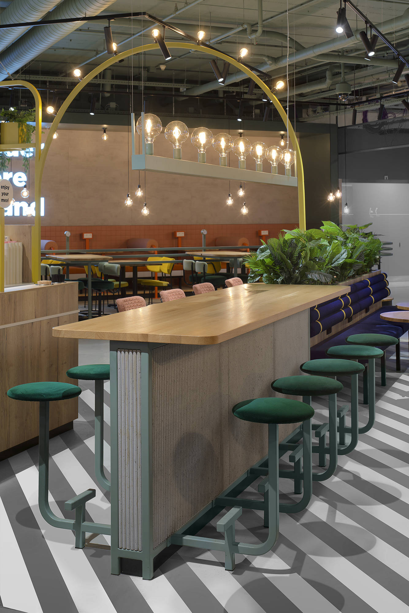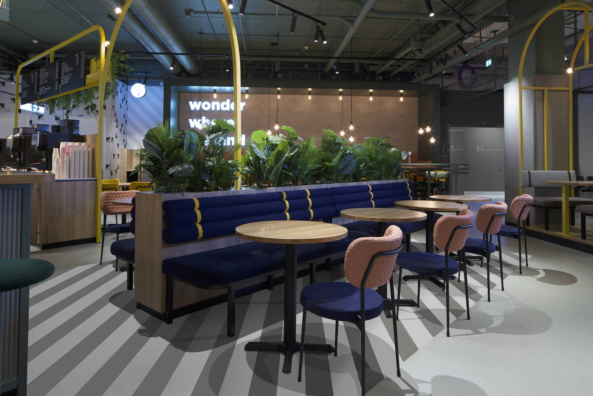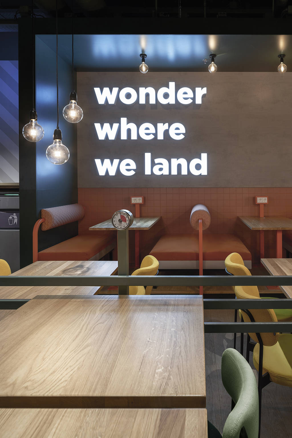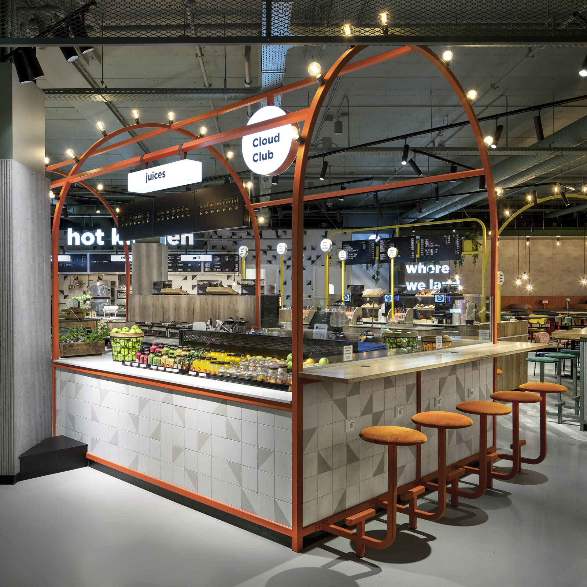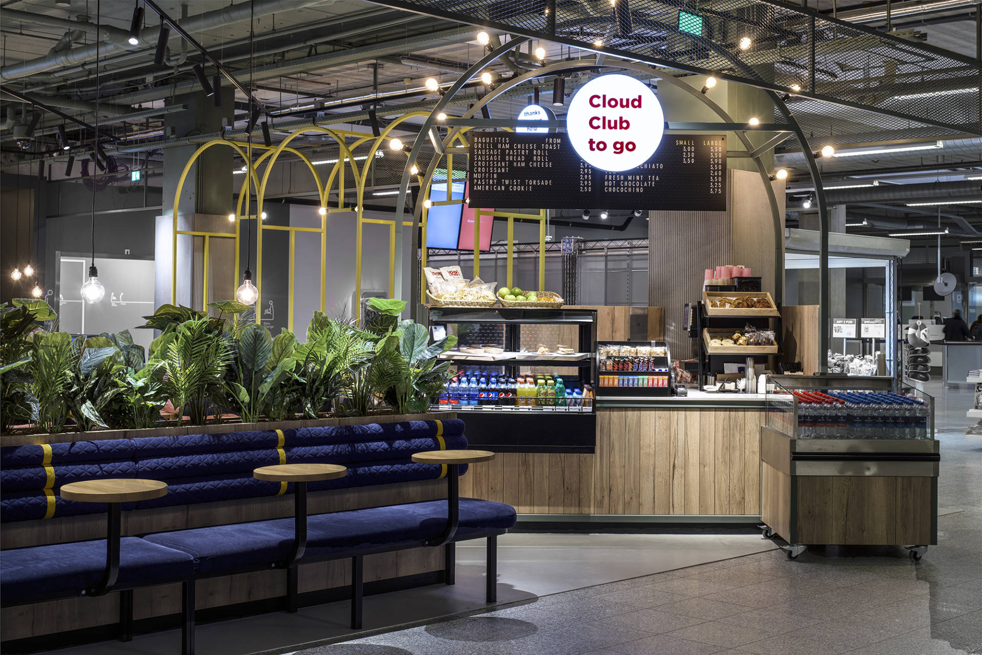 Er is heel wat research gedaan naar de best mogelijke layout van The Cloud Club. Uiteindelijk is Creneau erin geslaagd om alles zo te positioneren dat de reiziger niet voorbij The Cloud Club kunt zonder geconfronteerd te worden met al het lekkers dat er wordt verkocht. Pleasure is in the detail. Enkele custom made features die u in The Cloud Club terugvindt: zin om nieuwe mensen te ontmoeten in plaats van op de smartphone te tokkelen? Zet die lamp aan! De Join My Cloud lamp aan de zithoeken geeft aan dat u het wel ziet zitten dat iemand uw ‘cloud’ joint. Want mensen die reizen, hebben altijd wel een verhaal te vertellen.