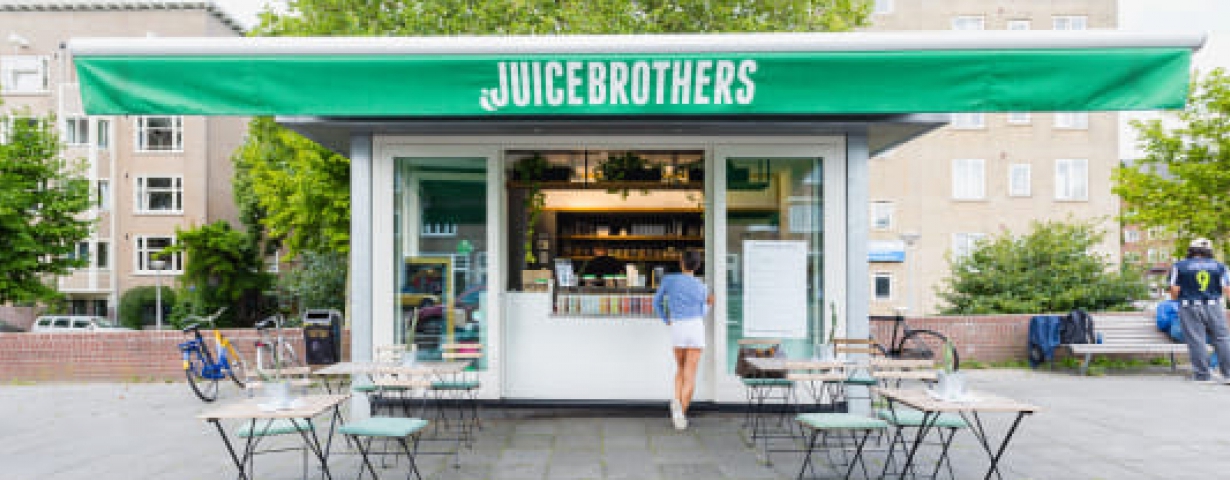 De JuiceBrothers kiosk zal in de zomer volledig in het teken staan van het vegan ijs. Naast het Van Leeuwen ijs kunnen klanten nog steeds terecht voor de sappen van JuiceBrothers.