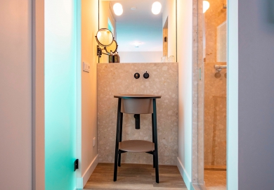 Opvallend aan de restyling van de hotelkamers van Kapellerput is de samenwerking met ontwerpers uit de Brabantse designregio. Zo is de achterwand van het bed handgemaakt en ontworpen door de Eindhovense designer Lotty Lindeman van Ontwerpstudio Scheublin & Lindeman. De Bent table en lounge stoelen zijn van Tristan Fencken en de bedlampen Tonone Bolt van ontwerper Anton de Groof, beide uit Den Bosch. Ook is er gekozen voor een half open badkamer met een design wastafelmeubel van Cielo, in diverse kleuren, als blikvanger in de kamers. Het prachtige uitzicht op het omliggende landgoed blijft onveranderd mooi.
