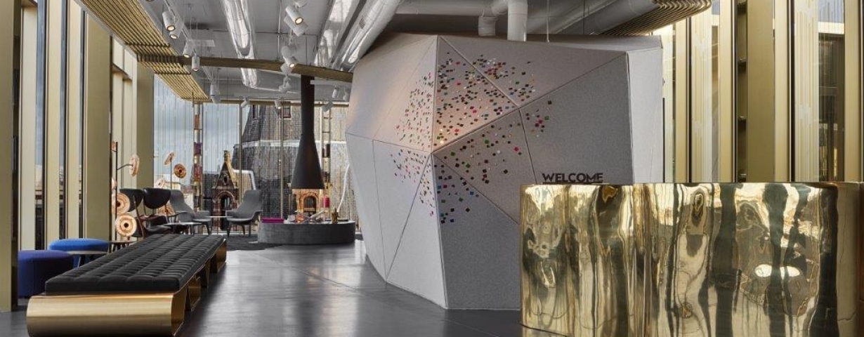 W in Amsterdam werd in 2016 bekroond tot Best Hotel Design. Rode draad in de stijlvolle inrichting door het Israëlische Baranowitz + Kronenberg, is het gebruik van hoogwaardige materialen zoals messing en hout. “Een heel geslaagd ontwerp”, vindt Van Zwetselaar. “Er is goed nagedacht over de luxe én wensen van gasten. Als je binnenkomt begint het feestje al en dat is consequent volgehouden. Dat getuigt van lef, want of je nou intiem of modern wilt: ga er echt voor. Niets zo irritant als half-half. De uitstraling is over the top, maar die blingbling past bij de clientèle.”