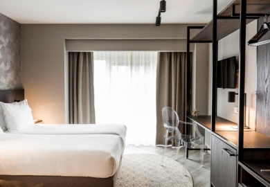De 75 hotelkamers in Sandton Eindhoven Centre omvatten longstay-appartementen, comfortkamers en 26 nieuwe de luxe kamers. Deze weerspiegelen de sfeer en uitstraling van het vernieuwde hotel met een op maat gecreëerd design dat luxe en verfijning ademt. Hotelmanager Bram Bijnen: ”Gasten waarderen de ruimtelijkheid van de nieuwe kamers en extra voorzieningen zoals een Nespresso-apparaat. Het ontwerpbureau heeft op een slimme manier de compacte ruimte benut, door toepassing van transparante materialen en een open kastenwand met functionele details."