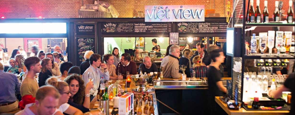 In de Foodhallen moet straks van alles te krijgen zijn: van makkelijk aanbod tot aan het hogere segment, een zo breed mogelijk aanbod voor een zo breed mogelijke doelgroep. "Het is een heel sociaal concept. Mensen eten samen, maar kunnen allemaal kiezen bij welk standje ze willen eten. Het voordeel is dat óók als je met een groot gezelschap bent, iedereen kan kiezen wat hij wil eten. Eten delen is belangrijk bij ons. Je ziet dat mensen met elkaar in gesprek raken doordat ze bij elkaar aanschuiven.”
