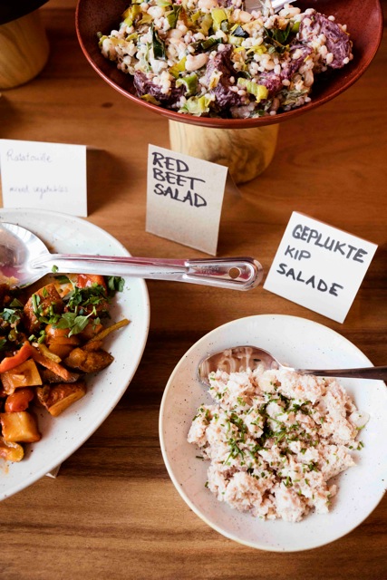 Op het menu verder vegetarische bitterballen van Chef Thor (3,25 euro/3 stuks), biologische wijnen uit Italië en Duitsland (vanaf 3,50 euro per glas), biologische bieren uit Nederland en verse sappen. Limonade en thee maakt men zelf in de doe-het-zelf limonade- en theebar met Amsterdamse siropen en veel verse ingrediënten. Voor ontbijt is er huisgemaakte granola, pecan brownie, gestoofde peren-cranberry crumble en appel-olijfoliecake.