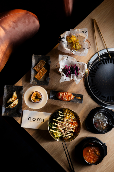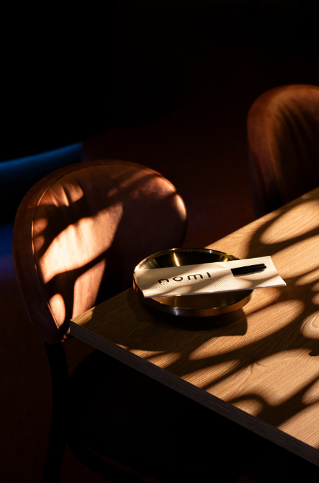 Nomi Leidseplein is een all-day venue met een kaart vol Koreaanse en Japanse gerechten, waaronder sushi en bibimbap. Het interieur van het restaurant is modern en sfeervol. Bij binnenkomst valt direct de 360-gradenbar op. Daarnaast is het restaurant ingericht met warme kleuren, zachte materialen, ruime ronde banken en love seats. Een dj zorgt voor een aangename achtergrondmuziek.