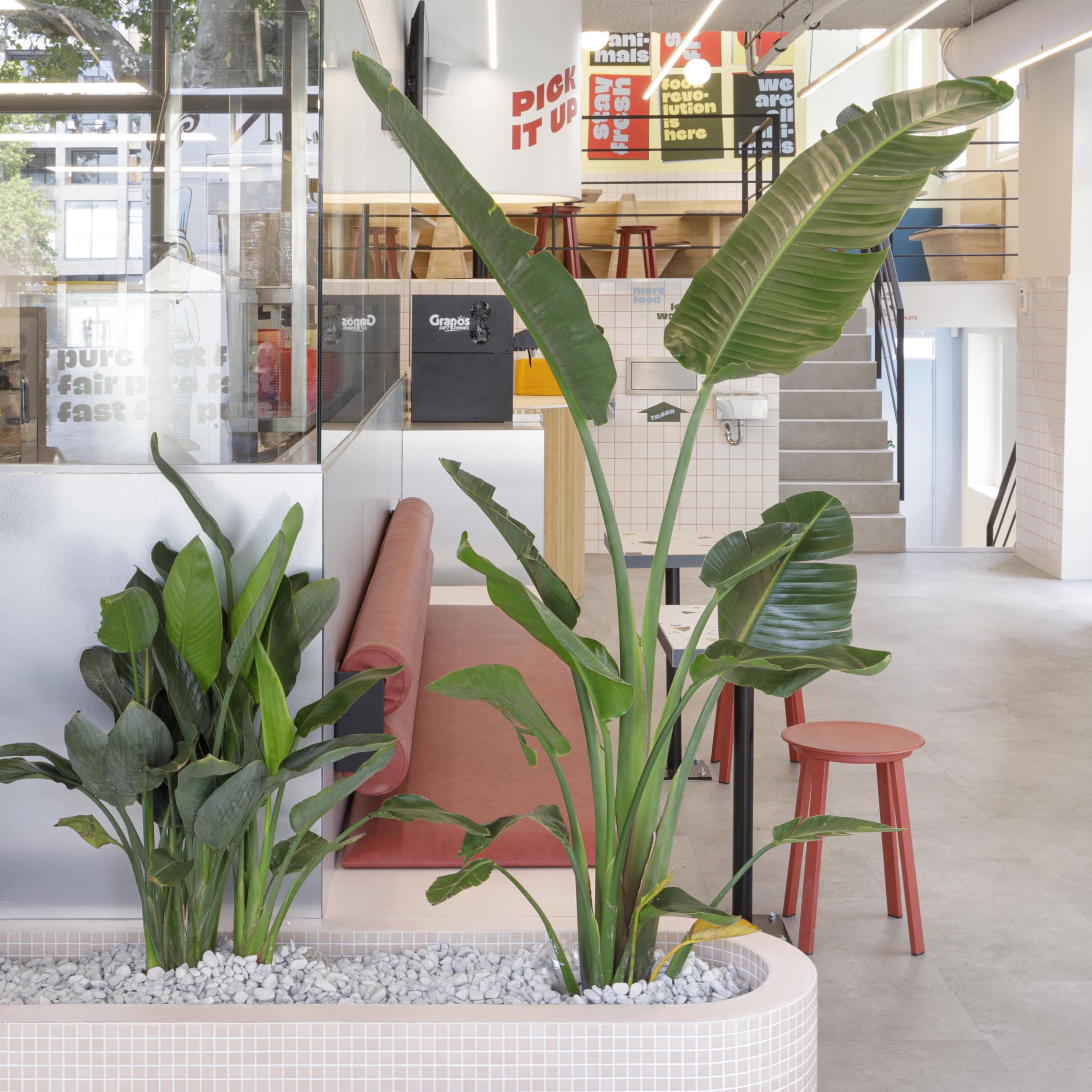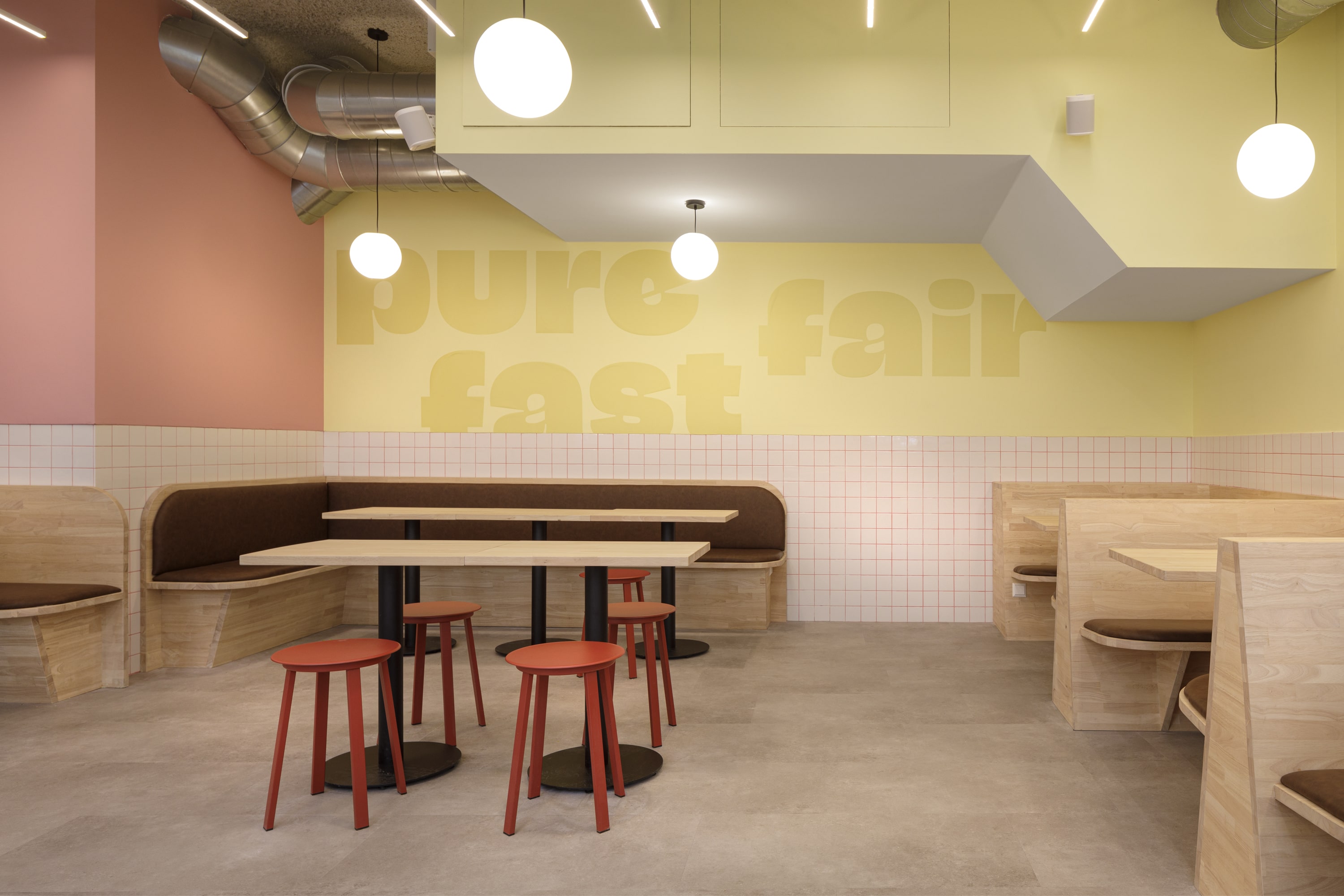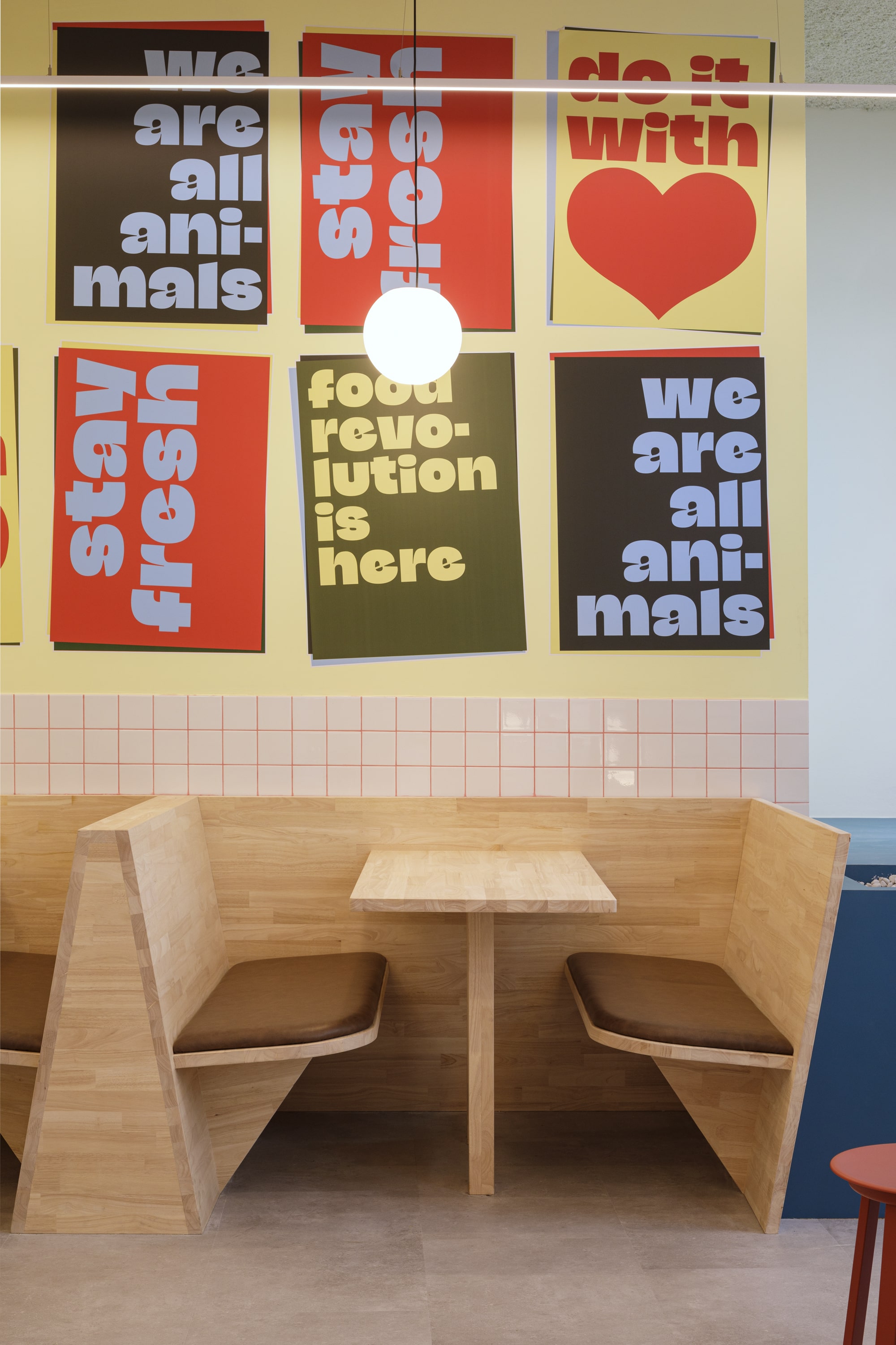 De begane grond van Howie Roll is efficiënt ingedeeld. De zit-, sta- en wachtplekken zijn bedoeld voor gasten die komen voor een snelle hap. Het zitgedeelte op de entresol is weer bedoeld voor een traditionele restaurantervaring en hier kunnen gasten terecht die wat langer willen tafelen. In het bovengedeelte zijn warme materialen, levendige kleuren, hanglampen en speelse statements gebruikt. Ook vind je hier verschillende soorten zitplaatsen waar gasten tot rust kunnen komen en nog even kunnen blijven hangen. De gestoffeerde booths en banken zijn ideaal voor grotere groepen vrienden en families.