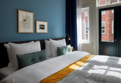 Een opvallende driedimensionale sculptuur aan het plafond leidt gasten naar een chique receptie. Deze is mede met speciale verlichting en een eikenhouten vloer met patronen geïnspireerd op de jaren ’70. De 189 kamers hebben een eigentijds design en combineren comfort met Nederlandse invloeden. Hiervoor gebruikten de designers diepe kleuren, rijke texturen en kunstwerken van de lokale kunstenaar Kat Klerks.
