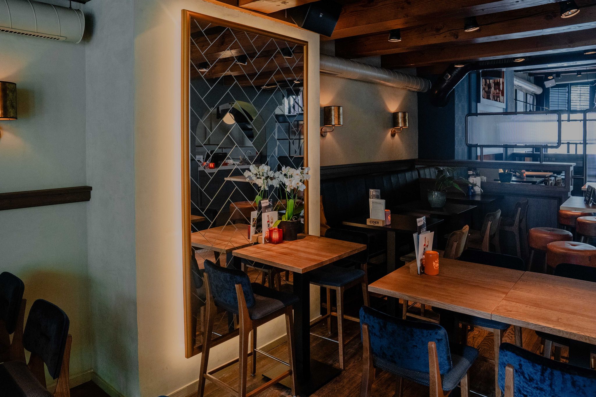 De verbouwing stond eigenlijk gepland voor het eind van de zomer, maar toen de horecasluiting op 15 maart werd aangekondig, hing Stretton direct aan de lijn met de vraag of de uitvoerende partijen zo snel mogelijk konden starten met de verbouwing. In een mum van tijd hebben de designers van Heineken Interieur Design de ontwerpen verder uitgewerkt en samenwerking gezocht met Kroeze Interieur. Zo kon Pavlov op 1 juni, volledig gerestyled, de deuren openen. Dankzij het dappere besluit van de ondernemer om in deze onzekere tijd zo’n stap te zetten én de soepele samenwerking tussen alle betrokken partijen, heeft Pavlov een bijzondere, sfeervolle upgrade gekregen.