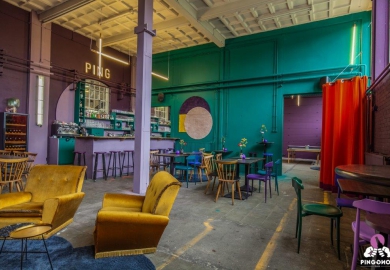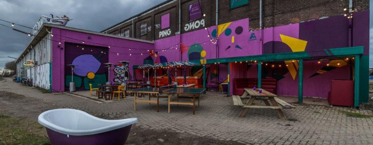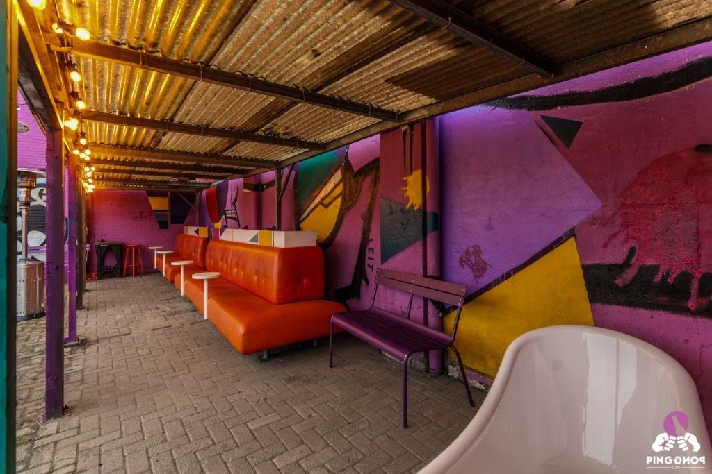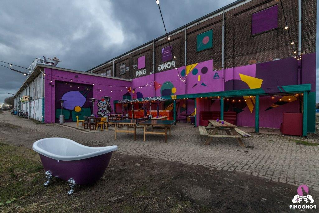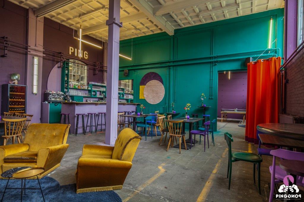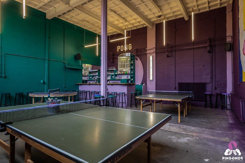 Sandra Planken verzorgde het interieur. “Door middel van grote kleurgebaren en een knipoog naar het prestigieuze opleidingsinstituut Bauhaus is er een statement gemaakt voor deze club.” Peron E en dus ook De Ping Pong Club zullen circa 2,5 jaar bestaan. Daarna wordt het gebied herontwikkeld. DePingPongClub.nl