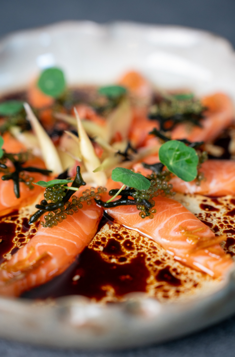 Hoofdfoto: Kelvin Lin en een gerecht met rauwe vis