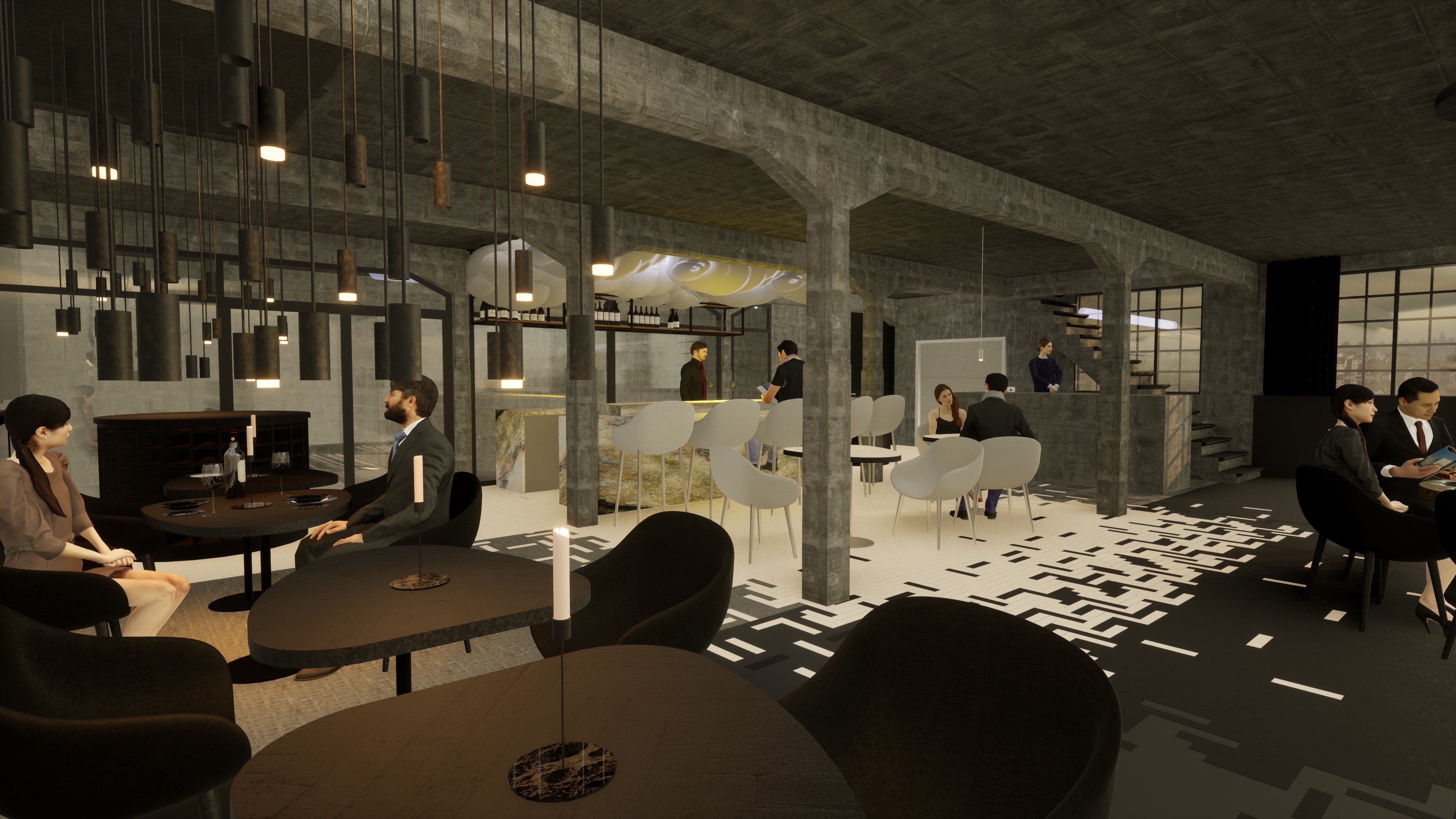 NOVO komt in het Sphinxkwartier – ooit een industrieterrein, nu een creatief bolwerk – op de vijfde etage van de Blanche Dael-branderij. “Het Sphinxkwartier is booming. De industriële look past erg goed bij ons restaurant. De sfeer is casual chic, maar toch warm”, aldus Welters.
