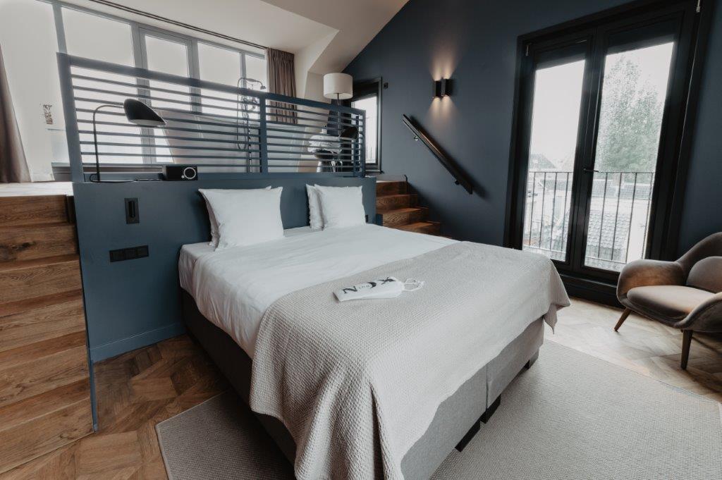 Interieurontwerper Paul Linse geeft met zijn ontwerp een eigentijdse twist aan het interieur, zonder de rijke historie van het gebouw te verliezen: “Waar het hotel uitgaat van de verwondering van de nacht, vieren bar en restaurant de dynamiek van de dag. En dat in een harmonisch contrast tussen klassiek en modern, zoals de vier hoekmedaillons in het imposante plafond in combinatie met nieuwe elementen als de spiegelende arcades in het restaurant.” The Nox Hotel opent net, als het restaurant, op 22 oktober. Het hotel van Dick Hoek en Willem Klaassenbestaat uit 23 designkamers.
