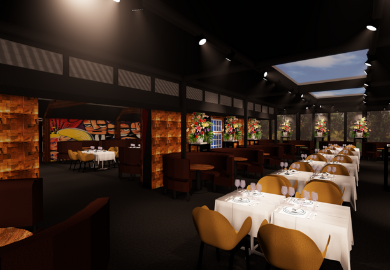“Het karakter van de oude boerderij komt erg naar voren. Hoe meer oude elementen, hoe beter”, zegt Verhoeven. “Het interieur van The Harbour Club heeft een eigen stijl en die zie je straks ook hier terug in de cognac-kleurige bankjes en de kunst van Selwyn Senatori. Het restaurant krijgt een grote klimaatgekoelde wijnkast en er komen levensgrote goudkleurige haaien in de nok van het dak. In het aquarium komen de schaaldieren die op het menu staan.”