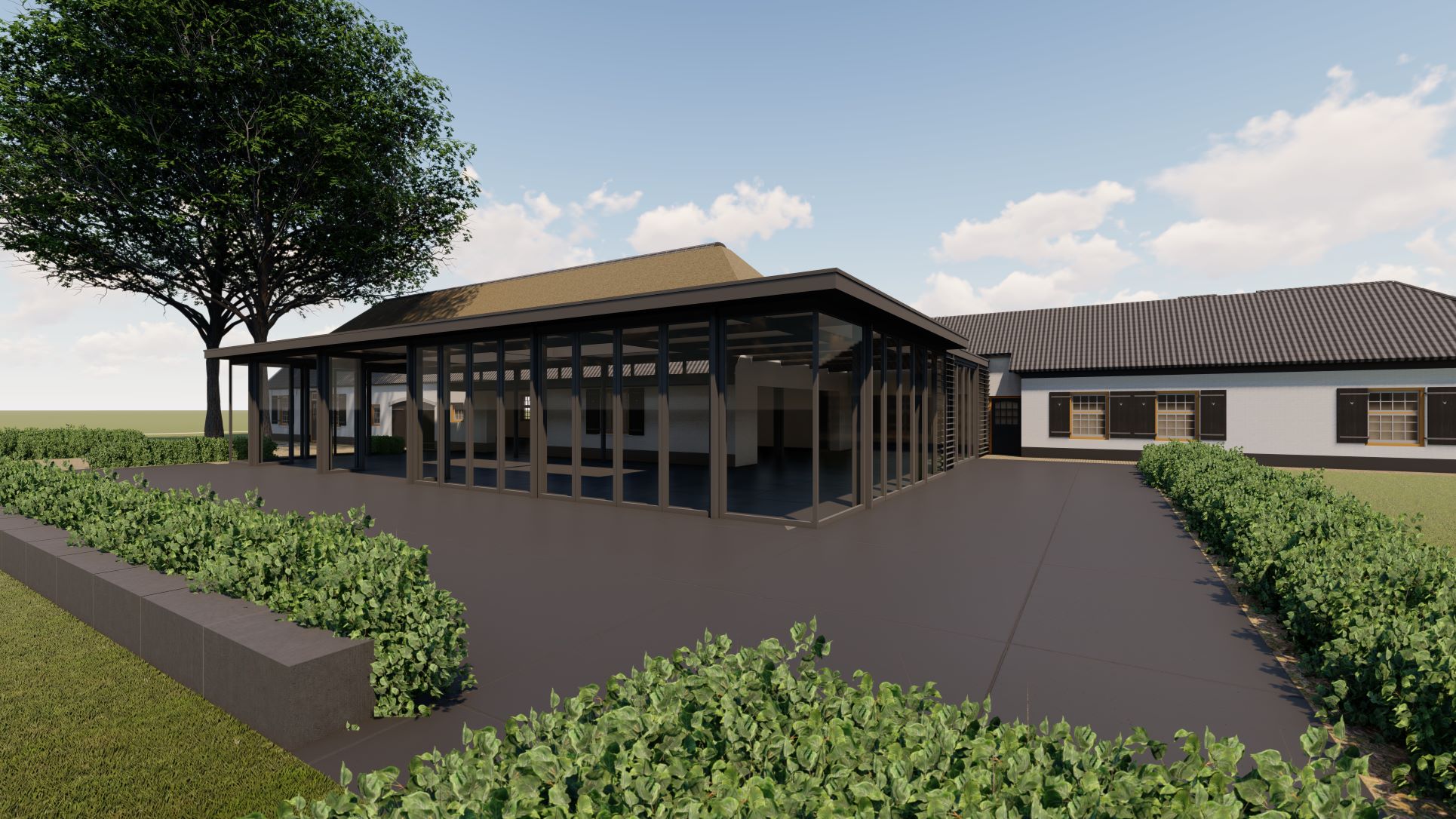 Architect van de Eindhovense vestiging is Paul Sloven van Sloven Architectuur. “Door de jaren heen is er veel aan de binnen- en buitenkant van de oude boerderij veranderd. Het is een kunst om de monumentale waarde in ere te houden, maar er wel wat aan toe te voegen. Aan de parkzijde komt een strakke en minimalistische serre. Dat geeft een spannend contrast met de oude boerderij.”