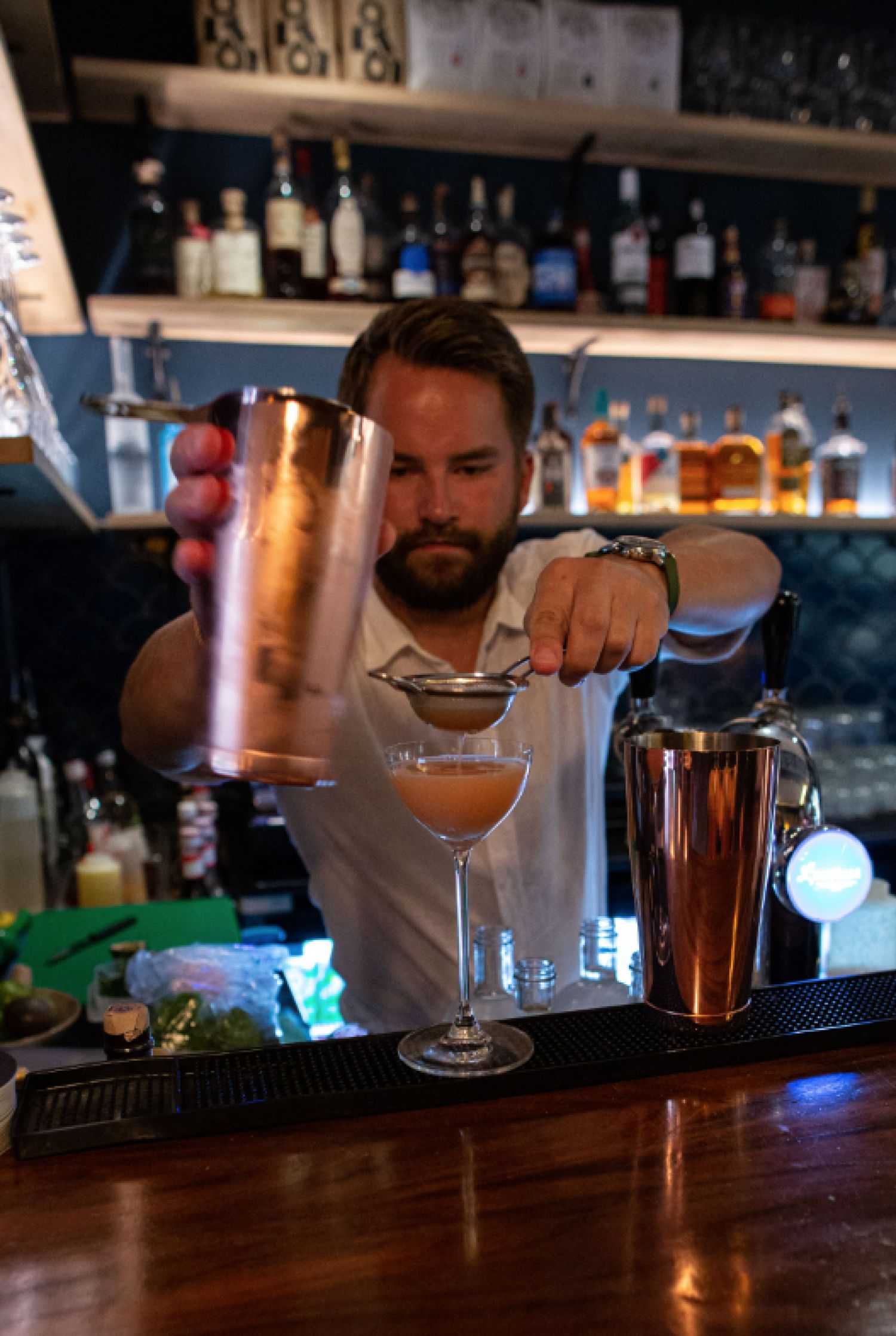 Naast de Zuid-Afrikaanse gerechten krijgen ook de cocktails een prominente plek. Alexander Heim werkte in diverse bars, van Kaapstad tot New York en van Londen tot Amsterdam. Nu schenkt hij in zijn eigen restaurant zowel klassiekers als cocktails met een twist. Denk aan Mount Gay Rum met caperitif en braaied (gegrilde) nectarinepuree of met vanille geïnfuseerde wodka, misokaramel, Kahlúa en espresso.