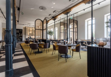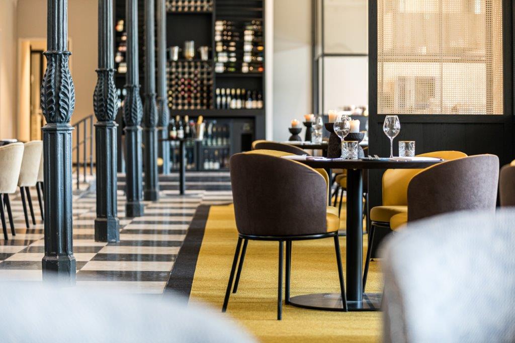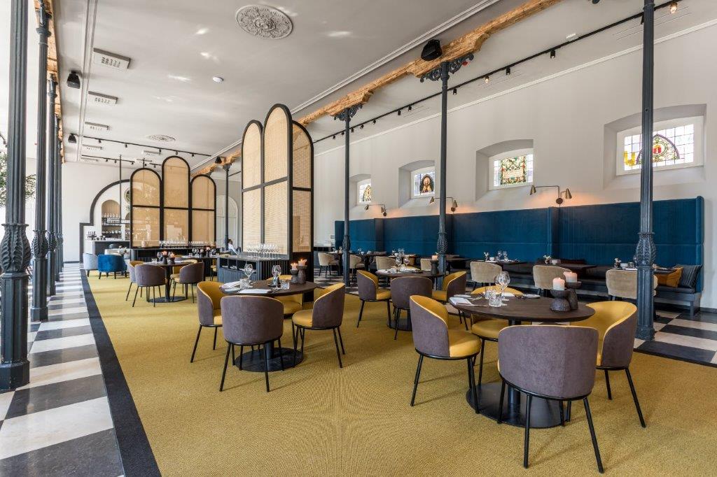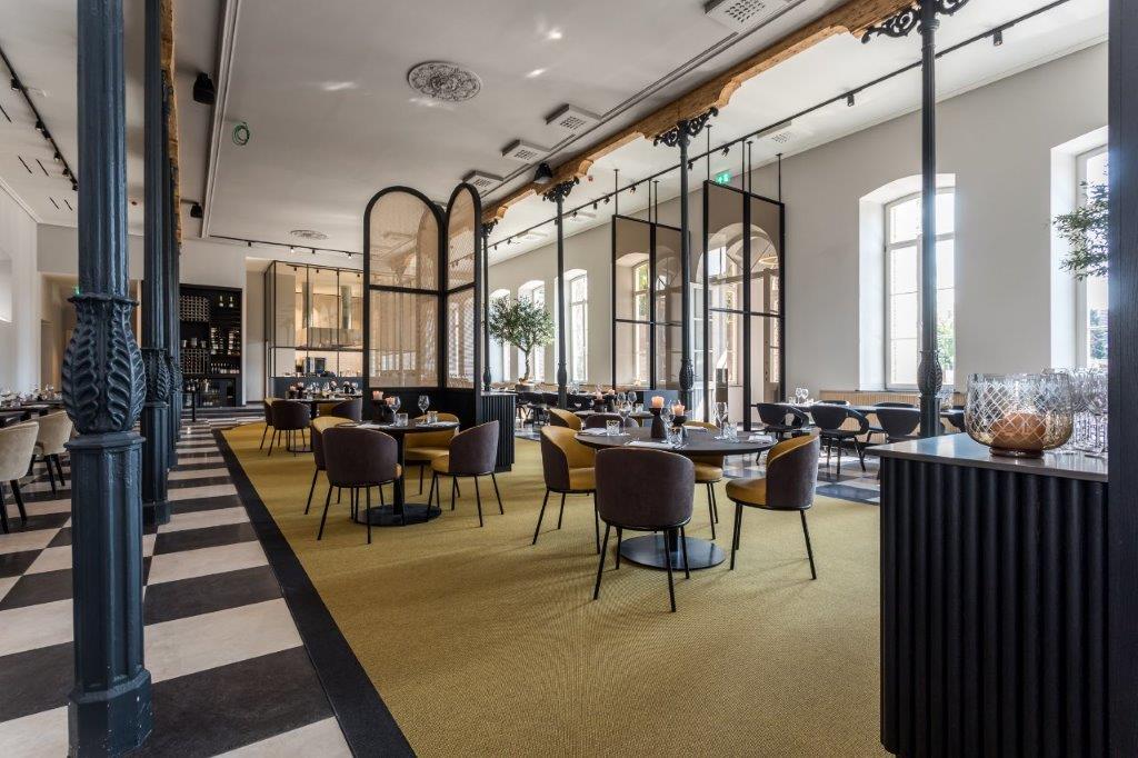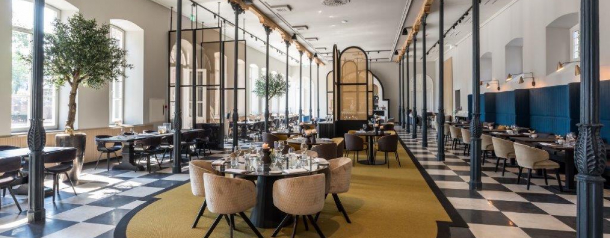 Het restaurant is gevestigd in een enorme zaal met gietijzeren zuilen van tweehonderd jaar oud. Door de hoogte van vijf meter heeft het restaurant een imposante uitstraling. De keuken staat op een verhoging, waardoor het keukenteam een soort 'theater-rol' krijgt. Chef Joël Reintjens heeft zijn culinaire opleiding en fundament genoten bij restaurant Toine Hermsen, van de gelijknamige chef. Een klassieke basis, die Joël zelf heeft verrijkt met oosterse inslagen. Zijn signature dish – steak tartare – wordt verrijkt met oosterse smaken en kruiden.