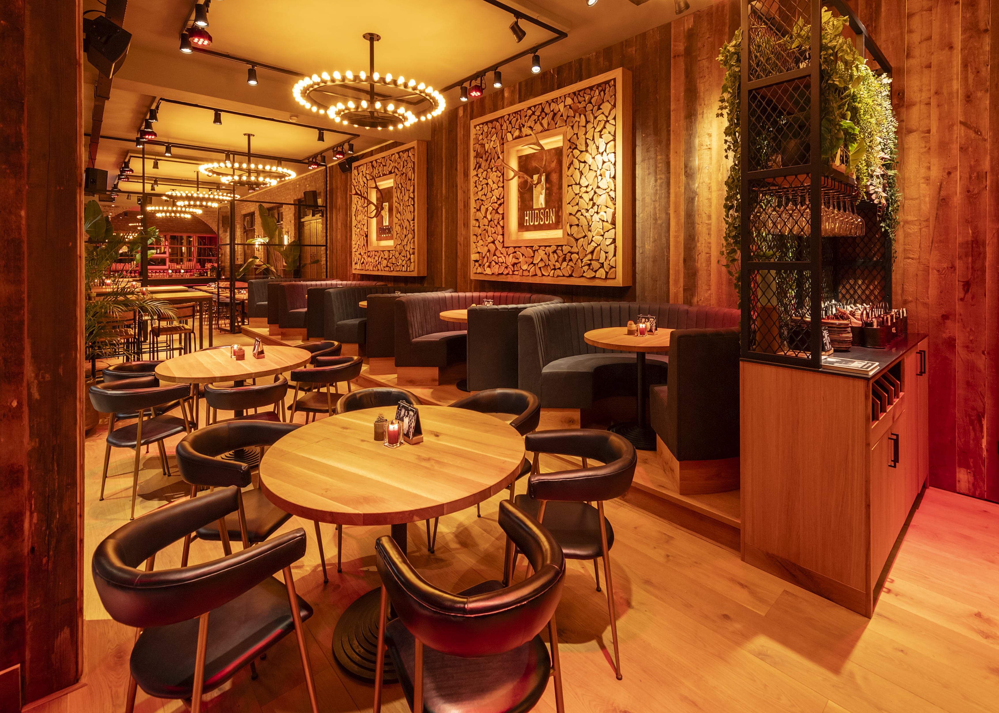 De urban en stoere look van de Hudson restaurants doen volgens de eigenaren denken aan hippe restaurants in New York. Het restaurant biedt 150 zitplaatsen voor lunch en diner, variërend van knusse ronde zitjes tot lage en hoge tafels voor grotere gezelschappen. Maar gasten kunnen ook aan de ruime bar plaatsnemen voor bites, borrels of diner. Er is een aparte living room voor vergaderingen en private dining.