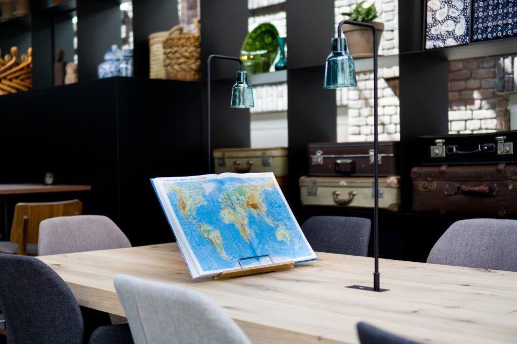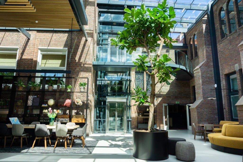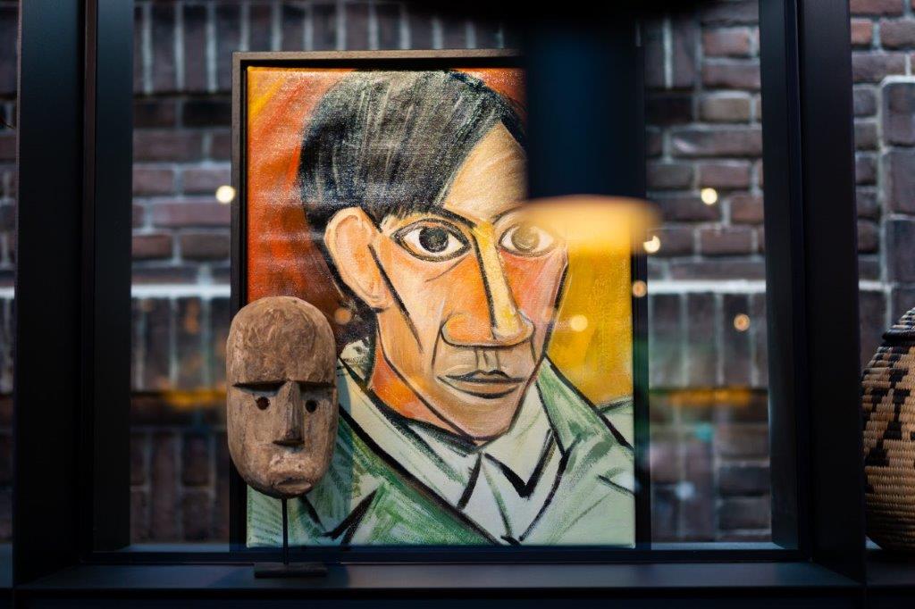 Het interieur van KonneKt sluit aan op het wereldse DNA van de historische locatie. Giel: "Verbinding en culturele gelijkenissen staan centraal binnen KonneKt. Dit ziet men onder andere terug in het gebruik van materialen en verzamelde souvenirs. Denk bijvoorbeeld aan Picasso’s zelfportret, dat toont als een Afrikaans stammenmasker. Of de kleurrijke borduursels uit Peru, die veel overeenkomsten tonen met de Marker klederdracht. Het gekozen meubilair en het gebruik van verschillende zones en sferen geven een warme en uitnodigende vibe. En hoewel het ontwerp modern is, is er ook oog voor de historie en zijn de kenmerkende details zoals het glas in lood met respect behandeld."