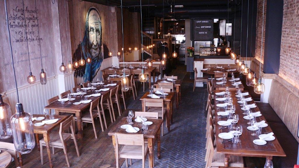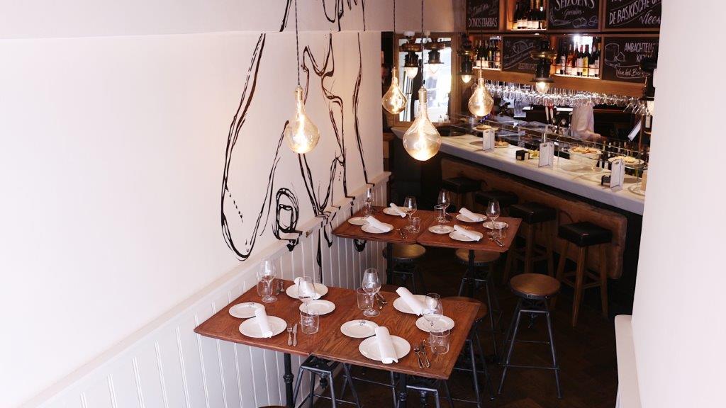 Pintxos vormen een essentieel onderdeel van de Baskische cultuur en ontbreken in Amsterdam niet. Voorin de zaak is een pintxosbar met een brede selectie pintxos uit Donostia die variëren per seizoen. Vanaf hier kunnen gasten doorschuiven naar het restaurant achterin de zaak.