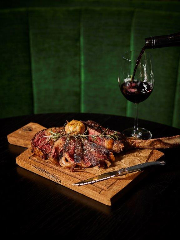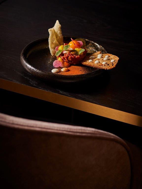 Chef Thijmen Veenman en zijn keukenbrigade hebben klassiekers met een eigen(wijze) twist op de kaart gezet. Veenman: “Neem de steak tartare. De eidooier garen we sous-vide (53 minuten op 63 graden celsius) zodat het smeerbaar wordt. De huisgemaakte kimchi en srirachasaus zorgen voor voor spanning en spice en de roze Chinese radijs en knalgele bloemkool voor extra crunch en kleur.” Andere gerechten zijn bijvoorbeeld tuna tataki met truffel teriyaki, coquilles met soy vinaigrette, kreeft ‘a la plancha’ of een ruime keuze uit robuuste steak-cuts, zoals tomahawk steak, côte de boeuf of een entrecôte, eventueel met een van de toppings: foie gras, kaviaar en truffel.