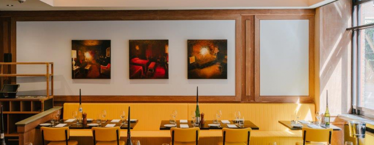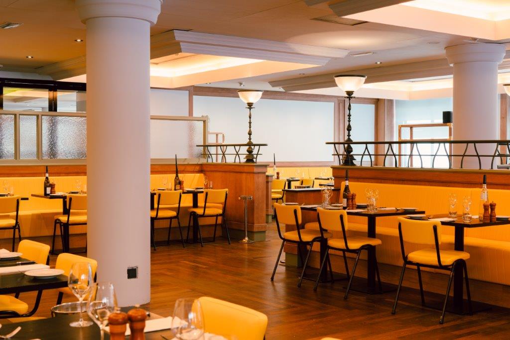 Het interieurconcept komt van David Tol. Hij heeft de zaak flink verfrist en was geïnspireerd door de klassieke brasserie stijl met oog voor het ambacht. Fel gele banken, staalwerk en licht blank hout worden gecombineerd met klassieke houten lambrisering en lijstwerken. De open keuken geeft zicht op de ambachtelijke bereiding van de gerechten.